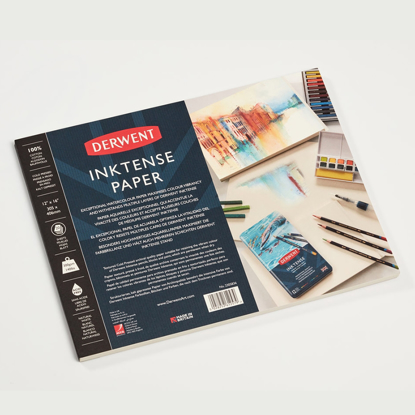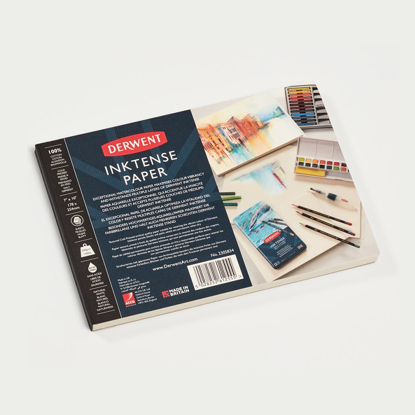 Inktense Paper Pad kommer i 3 størrelser og er et kaldpresset kvalitetspapir i 100% bomull. Det egner seg spesielt godt sammen med Derwent Inktense; blyanter, kritt og paint pan. Papiret er 300gr, har en naturlig hvit tone og blokkene inneholder 20 ark.