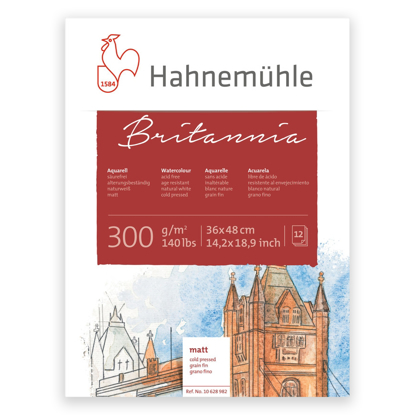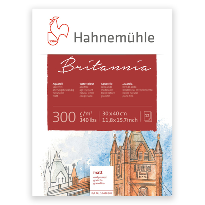 Britannia er et akvarellpapir fra Hahnemühle som er naturlig hvitt, syrefritt og lysekte. Egner seg for våte maleteknikker, spesielt akvarell, men også akryl og gouache.