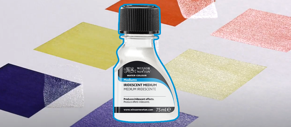 Iridescent Medium gir akvarellmalingen er perlemor og glittereffekt når den blandes med akvarellmaling, og er spesielt effektiv når den blandes med gjennomsiktige farger, og syntes spesielt godt på mørkere underlag. Kan mikses direkte med fargen, eller påføres over tørket akvarellmaling. Husk å riste den godt før bruk!