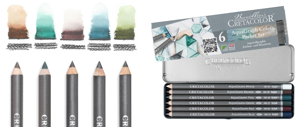 Vi har fått inn et nytt tegne- og skissesett fra Cretacolor, AquaGraph Colors Pocket set. AquaGraph er vannløselige, fargede grafittblyanter. Settet inneholder 6 stk. blyanter med ulikefargetoner.