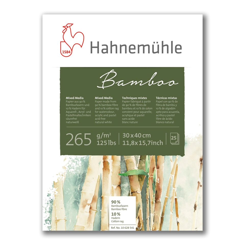 Bamboo er et Mixed Media papir fra Hahnemühle som er laget av bambus. Blokken inneholder 25 ark i 265 gram. Bamboo egner seg for både tørre og våte teknikker, som blyant, penn, blekk, pastell, vannløselige fargeblyanter, akvarell, gouache, kull og akrylmaling. Papiret har en naturlig, off white tone.