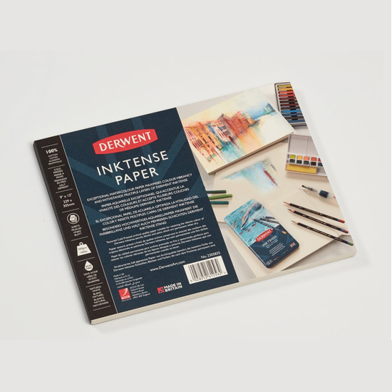 Inktense Paper Pad kommer i 3 størrelser og er et kaldpresset kvalitetspapir i 100% bomull. Det egner seg spesielt godt sammen med Derwent Inktense; blyanter, kritt og paint pan. Papiret er 300gr, har en naturlig hvit tone og blokkene inneholder 20 ark.