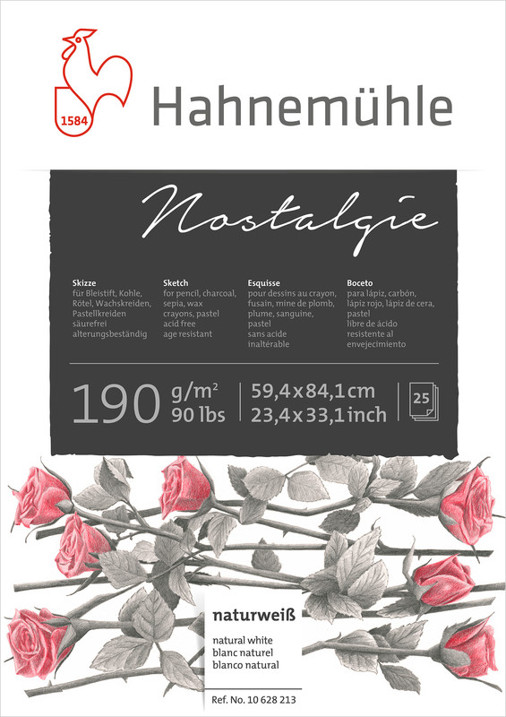 Tegneblokk fra Hahnemühle som inneholder det populære papiret Nostalgie - et syrefritt tegnepapir på 190 gram. Papiret egner seg for både tørre og våte teknikker.