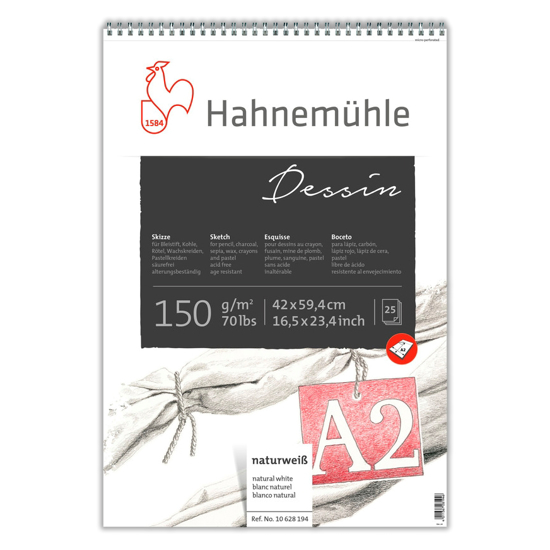 Dessin er et syrefritt skissepapir på 150 gram fra Hahnemühle med spiral. Blokken inneholder 25 ark.