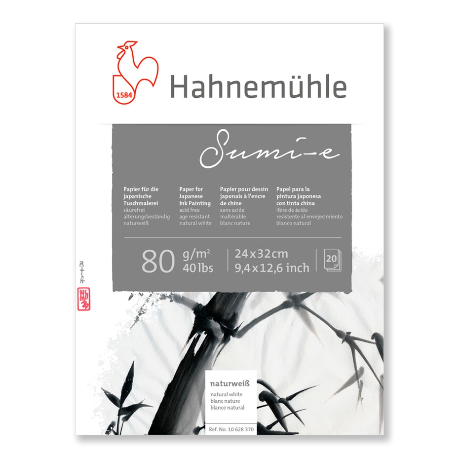Sumi-E er et spesialpapir fra Hahnemühle som egnerseg for japansk blekktegning og kalligrafi. Papiret er i 80 gram og blokken inneholder 20 ark.