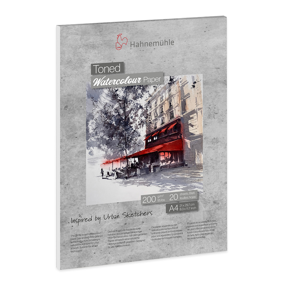Hahnemühle Toned Watercolour Pads er akvarellblokker med tonet papir i beige og grå. Papiret har en jevn, finkornet akvarellstruktur og er på 200 gram. Akvarellblokkene inneholder 20 ark, og kommer i A5, A4 og 20x20 cm.