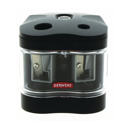 Praktisk blyantspisser med to hull og beholder fra Derwent.