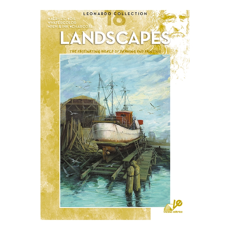 Landscapes #18 - Tegning. Denne utgaven viser hvordan man tegner landskapscener ved hjelp av en rekke teknikker. Den inkluderer også sort/hvitt blekktegninger av landskap.