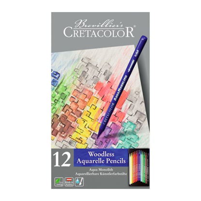 Sett á 12 farger. Aqua Monolith fra Cretacolor er et 100% fargeprodukt. Fargeblyanten er trukket med fargeløs film så farge ikke smitter av på hendene. Aqua Monolith gir skarpe fine kanter når du tegner, og hele blyanten brukes, og fargepigmentene er de samme som brukes i Marino fargeblyanter fra Cretacolor. Finnes i 72 farger.