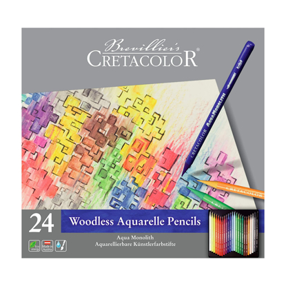 Sett á 24 farger. Aqua Monolith fra Cretacolor er et 100% fargeprodukt. Fargeblyanten er trukket med fargeløs film så farge ikke smitter av på hendene. Aqua Monolith gir skarpe fine kanter når du tegner, og hele blyanten brukes, og fargepigmentene er de samme som brukes i Marino fargeblyanter fra Cretacolor. Finnes i 72 farger.