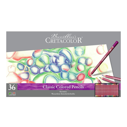 Sett med 36 fargeblyanter. Karmina fra Cretacolor er en klassisk fargeblyant, som er høyt pigmentert, lysekte og vannfast. Karmina er i sekskantet utførelse, med 3,8 mm fargemine.