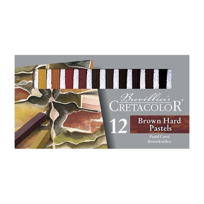 Brown Hard Pastels fra Cretacolor i 12 naturlige brun- og rødtoner. Krittene er høyt pigmenterte, vannløselige, oljefrie og gir en intens farge.