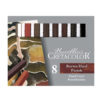Brown Hard Pastels fra Cretacolor i 8 naturlige bruntoner. Krittene er høyt pigmenterte, vannløselige, oljefrie og gir en intens farge.