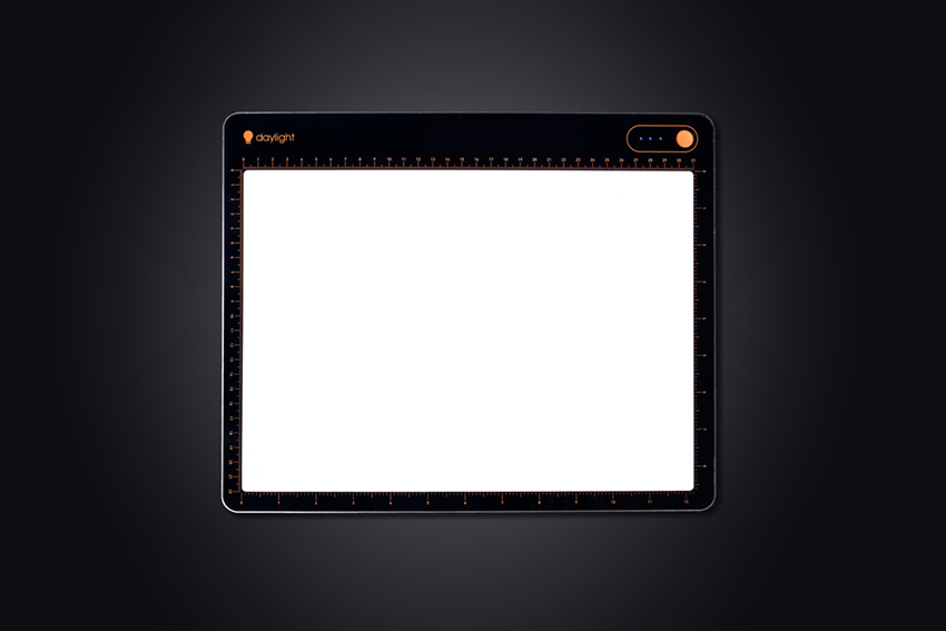 Det er utstyrt med ultrasterke dagslys-LED-er på 6 000K for nøyaktig fargegjengivelse, og en 3-trinns dimmer som lar deg justere og kontrollere den jevne lysspredningen etter papirvekt eller stofftykkelse. Bruk linjalmarkeringene (i tommer og centimeter) for ekstra presisjon når du tegner, designer eller driver med tracing.