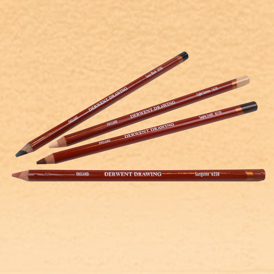 Drawing fra Derwent. Kunstnerblyanter i natur-/jord- og sepiatoner, med ekstra tykk mine. Tørre farger, ideelle for natur og dyremotiver. Pastellblyanter/kunstnerblyanter skal spisses med spesialspisser som kun skjærer i treverket. Selve minen spisses med kniv/skalpell eller sandpapir. Rund blyant med 5 mm mine. Finnes i 24 farger.