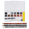 Derwent Shade and Tone Mixed Media sett inneholder følgende farger: Black, White, Storm Grey, Graphite Grey, Sepia Ink, Burnt Earth, Burnt, Embers, Autumn Brown, Sepia, Venetian Red, Sanguine og Mars Orange