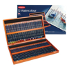 Lemon Cadmium, Rose Pink, Light Violet, Kingfisher Blue, Emerald Green, May Green, Brown Ochre, Terracotta, Blue Grey, Gunmetal, Chinese White, Deep Cadmium, Olive Green, Orange Chrome, Deep Vermilion, Crimson Lake, Imperial Purple, Spectrum Blue, Prussian Blue, Mineral Green, Grass Green, Golden Brown, Copper Beech, Ivory Black, Straw Yellow, Scarlet Lake, Flesh Pink, Magenta, Dark Violet, Blue Violet Lake, Jade Green, Cedar Green, Bronze, Vandyke Brown, Raw Sienna, Ultramarine, Zinc Yellow, Gold, Primrose Yellow, Naples Yellow, Middle Chrome, Deep Chrome, Spectrum Orange, Pale Vermilion, Rose Madder Lake, Red Violet Lake, Delft Blue, Smalt Blue, Cobalt Blue, Light Blue, Sky Blue, Indigo, Oriental Blue, Turquoise Blue, Turquoise Green, Juniper Green, Bottle Green, Water Green, Sap Green, Sepia, Burnt Umber, Raw Umber, Burnt Yellow Ochre, Burnt Sienna, Venetian Red, Burnt Carmine, Chocolate, French Grey og Silver Grey.
