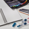 Pencil Wrap - rullepenal i beige lerretstoff med brune kanter og trykknapp, medplass til 30 blyanter og rekvisita. Når du bruker dette, ruller du pennalet ut,så det ligger flatt.