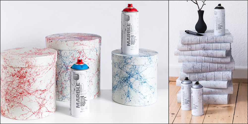Dette er en dekkende spray som gir en svært realistisk marmoreffekt. Kan brukes på en rekke ulike underlag, kartong, grunnet lerret, tre, glass, metall, keramikk, porselen, sten, akryl og andre malbare materialer. Du regulerer tettheten på marmorstrukturen med avstand til materialet. Jo nærmere du går, jo tettere blir mønsteret. Sprayen kommer med en vridbar «kalligrafi»-dyse som gjør at du velger om sprayen kommer vertikalt eller horisontalt. Når marmoreringen er gjennomtørr kan du legge på en topplakk/ferniss.