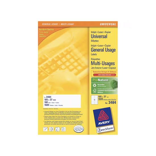 Etikett A4 Avery Ultragrip 3484, 105x37mm