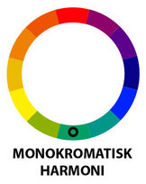 Monokromatiske farger vil alltid harmonere. De er forskjellige nyanser av samme farge. Man bruker altså kun én farge, og man lager nyanser ved å justere på metning og valør. Dette skaper en subtil, beroligende effekt som er spesielt nyttig for å skape et sammenhengende utseende.