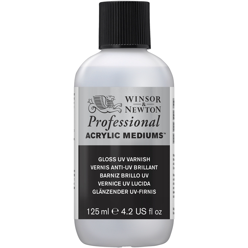 Gloss UV Varnish fra W&N Professional Acrylic Mediums. Dette er en ferniss for akrylmalerier med UV-filter, som gir en blank / glossy overflate. NB - Akrylmalerier skal ikke fernisseres før det har tørket i minst 4 uker.