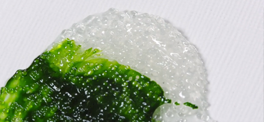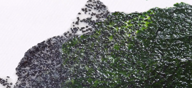 Glass Bead Texture Gel er sammensatt av små, sfæriske glasspeler i en tykk, klar akrylgel. Når den brukes med transparente farger, gir den en juvellignende og glassaktig overflate.