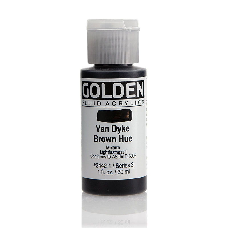 Golden Fluid Acrylics er en tyntflytende akrylmaling i kunstnerkvalitet. Golden Fluid er lysekte og har svært høy pigmentereing. Den har samme fargeintensitet som Heavy Body, men en mye mer flytende konsistens, som kremfløte.