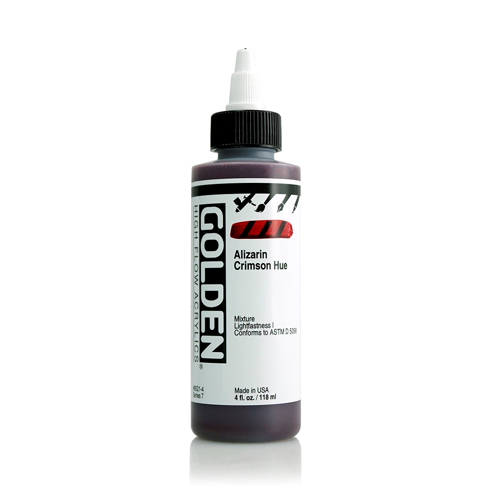 GOLDEN High Flow akrylmaling har høy intensitet, er tyntflytende og består av opake og transparente pigmenter. Fargene er tilnærmet tilsetningsfrie og produsert av 100% akrylpolymer og lysekte pigmenter*. High Flow har like høy kvalitet som alle andre Golden-produkter, og kan blandes med Fluid, Heavy Body, Open, medier, gesso og additiver. *Fluoriserende farger ikke lysekte. High Flow finnes i 49 farger og i størrelsene 30 ml og 118 ml.