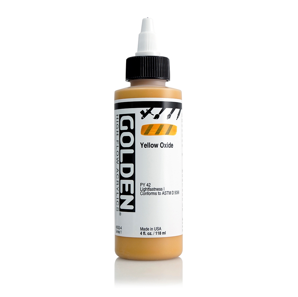 GOLDEN High Flow akrylmaling har høy intensitet, er tyntflytende og består av opake og transparente pigmenter. Fargene er tilnærmet tilsetningsfrie og produsert av 100% akrylpolymer og lysekte pigmenter*. High Flow har like høy kvalitet som alle andre Golden-produkter, og kan blandes med Fluid, Heavy Body, Open, medier, gesso og additiver. *Fluoriserende farger ikke lysekte. High Flow finnes i 49 farger og i størrelsene 30 ml og 118 ml.