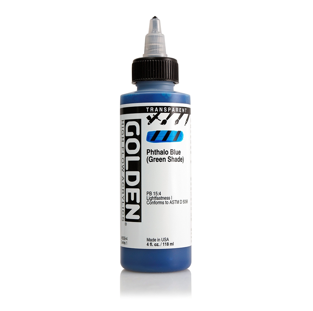 GOLDEN High Flow akrylmaling har høy intensitet, er tyntflytende og består av opake og transparente pigmenter. Fargene er tilnærmet tilsetningsfrie og produsert av 100% akrylpolymer og lysekte pigmenter*. High Flow har like høy kvalitet som alle andre Golden-produkter, og kan blandes med Fluid, Heavy Body, Open, medier, gesso og additiver. *Fluoriserende farger ikke lysekte. High Flow finnes i 49 farger og i størrelsene 30 ml og 118 ml.