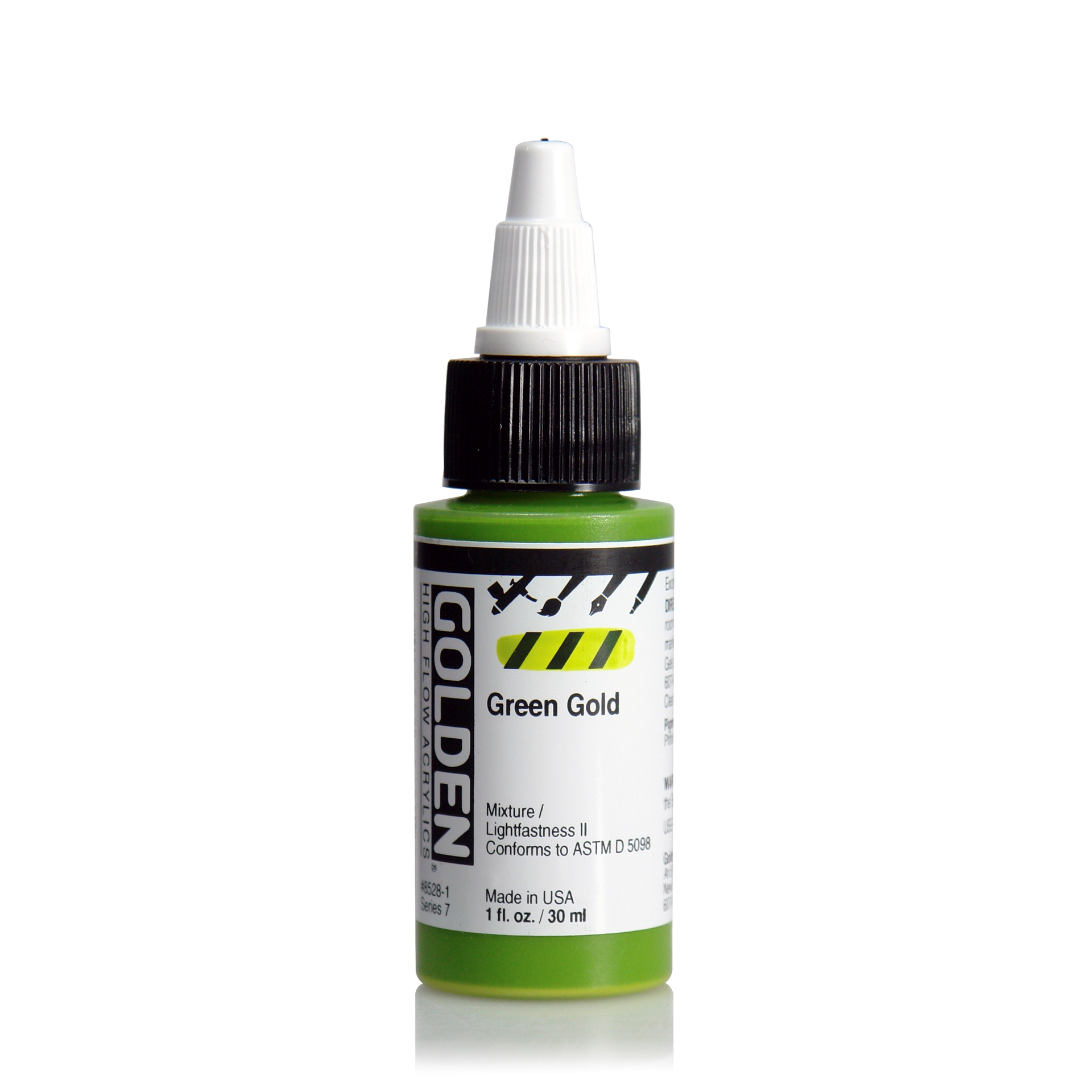 GOLDEN High Flow akrylmaling har høy intensitet, er tyntflytende og består av opake og transparente pigmenter. Fargene er tilnærmet tilsetningsfrie og produsert av 100% akrylpolymer og lysekte pigmenter*. High Flow har like høy kvalitet som alle andre Golden-produkter, og kan blandes med Fluid, Heavy Body, Open, medier, gesso og additiver. *Fluoriserende farger ikke lysekte. High Flow finnes i 49 farger og i størrelsene 30 ml og 118 ml.