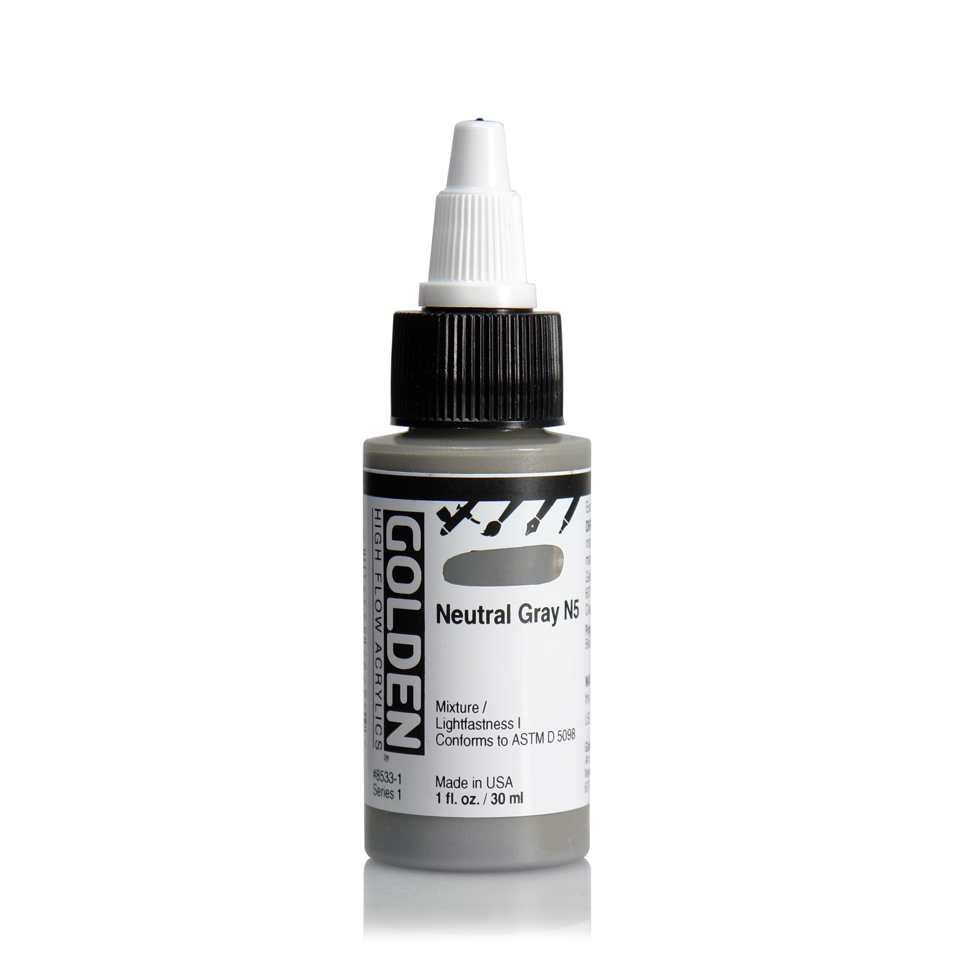 GOLDEN High Flow akrylmaling har høy intensitet, er tyntflytende og består av opake og transparente pigmenter. Fargene er tilnærmet tilsetningsfrie og produsert av 100% akrylpolymer og lysekte pigmenter*. High Flow har like høy kvalitet som alle andre Golden-produkter, og kan blandes med Fluid, Heavy Body, Open, medier, gesso og additiver. *Fluoriserende farger ikke lysekte. High Flow finnes i 49 farger og i størrelsene 30 ml og 118 ml.