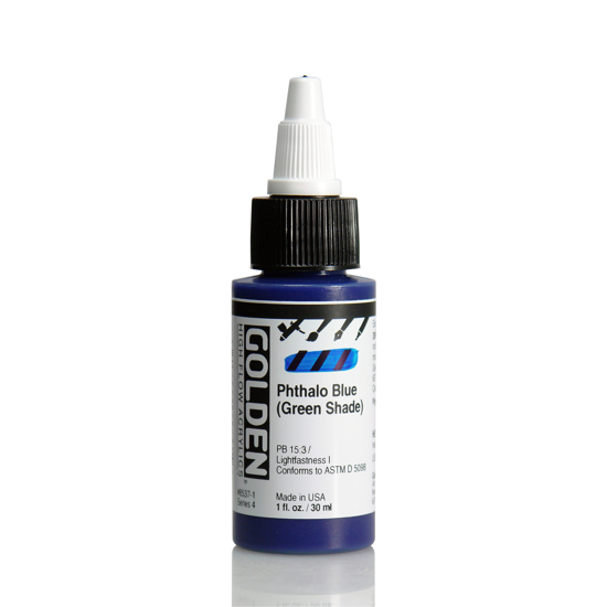 GOLDEN High Flow akrylmaling har høy intensitet, er tyntflytende og består av opake og transparente pigmenter. Fargene er tilnærmet tilsetningsfrie og produsert av 100% akrylpolymer og lysekte pigmenter*. High Flow har like høy kvalitet som alle andre Golden-produkter, og kan blandes med Fluid, Heavy Body, Open, medier, gesso og additiver. *Fluoriserende farger ikke lysekte. High Flow finnes i 49 farger og i størrelsene 30 ml og 118 ml.