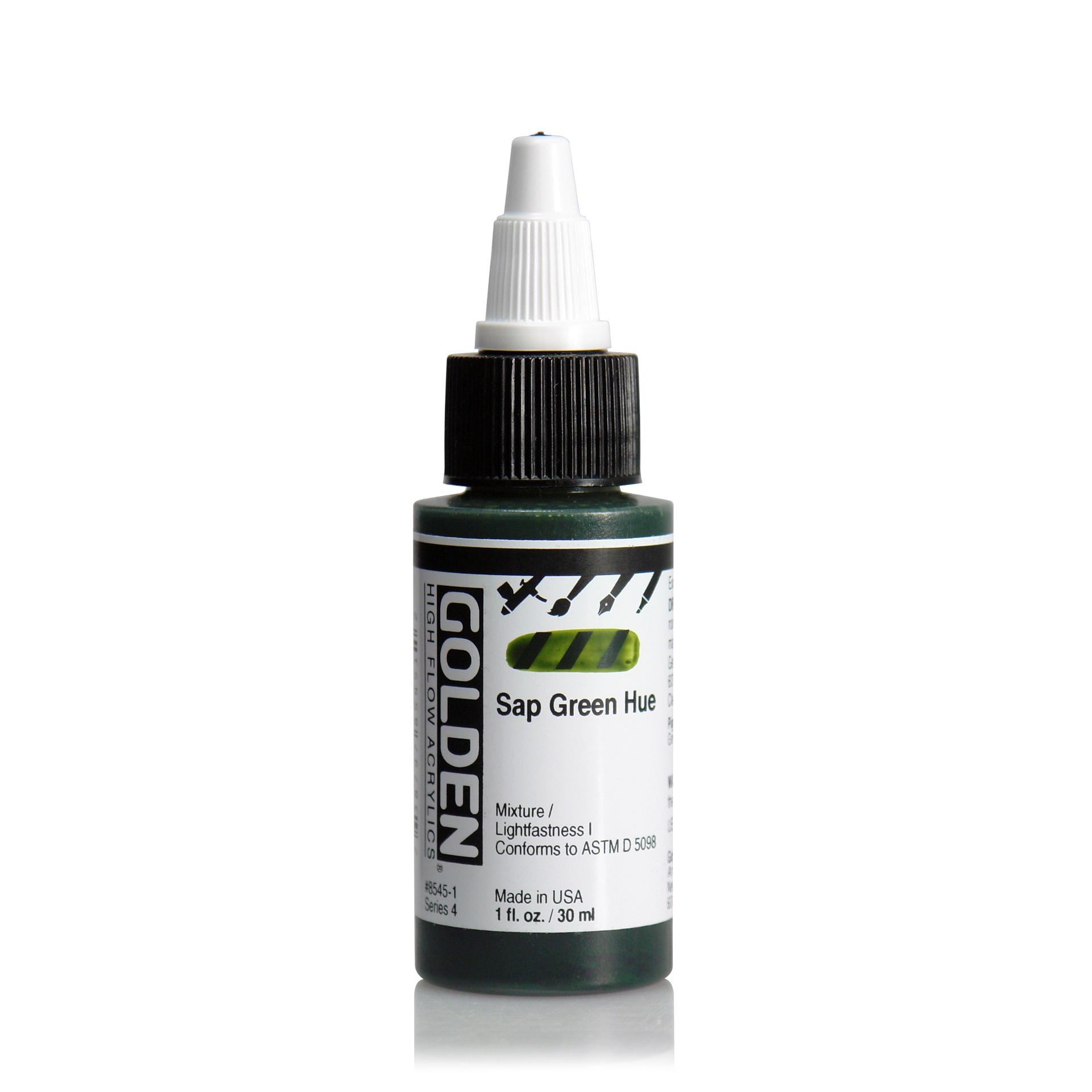GOLDEN High Flow akrylmaling har høy intensitet, er tyntflytende og består av opake og transparente pigmenter. Fargene er tilnærmet tilsetningsfrie og produsert av 100% akrylpolymer og lysekte pigmenter*. High Flow har like høy kvalitet som alle andre Golden-produkter, og kan blandes med Fluid, Heavy Body, Open, medier, gesso og additiver. *Fluoriserende farger ikke lysekte. High Flow finnes i 49 farger og i størrelsene 30 ml og 118 ml.