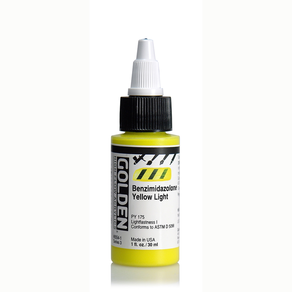 GOLDEN High Flow akrylmaling har høy intensitet, er tyntflytende og består av opake og transparente pigmenter. Fargene er tilnærmet tilsetningsfrie og produsert av 100% akrylpolymer og lysekte pigmenter*. High Flow har like høy kvalitet som alle andre Golden-produkter, og kan blandes med Fluid, Heavy Body, Open, medier, gesso og additiver. *Fluoriserende farger ikke lysekte. High Flow finnes i 49 farger og i størrelsene 30 ml og 118 ml.