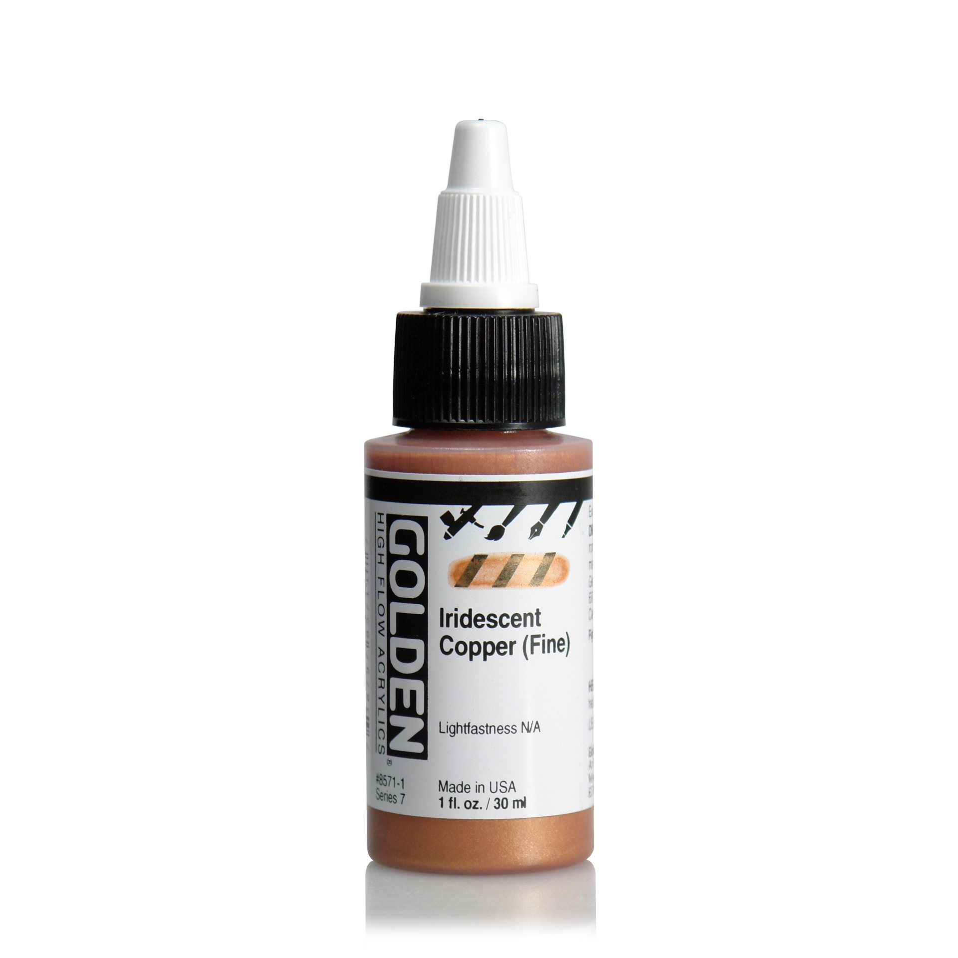 GOLDEN High Flow akrylmaling har høy intensitet, er tyntflytende og består av opake og transparente pigmenter. Fargene er tilnærmet tilsetningsfrie og produsert av 100% akrylpolymer og lysekte pigmenter*. High Flow har like høy kvalitet som alle andre Golden-produkter, og kan blandes med Fluid, Heavy Body, Open, medier, gesso og additiver. *Fluoriserende farger ikke lysekte. High Flow finnes i 49 farger og i størrelsene 30 ml og 118 ml.