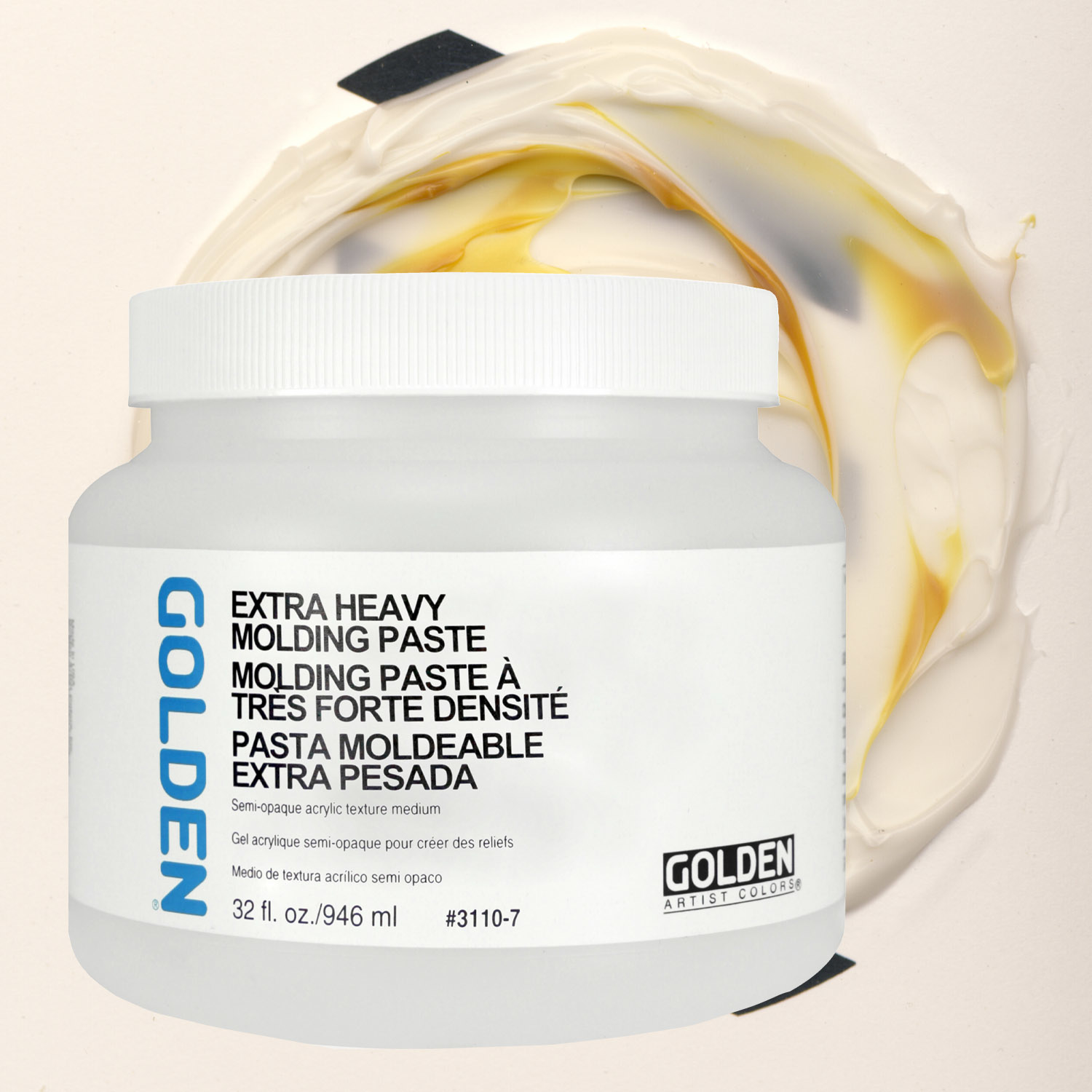 Extra Heavy Molding Paste (3110) er en blanding av Extra Heavy Gel og Molding Paste. Den tørker til en halvblank semi-opak overflate som blander godt med farger. Perfekt til å bygge tykke teksturer og overflatelag.