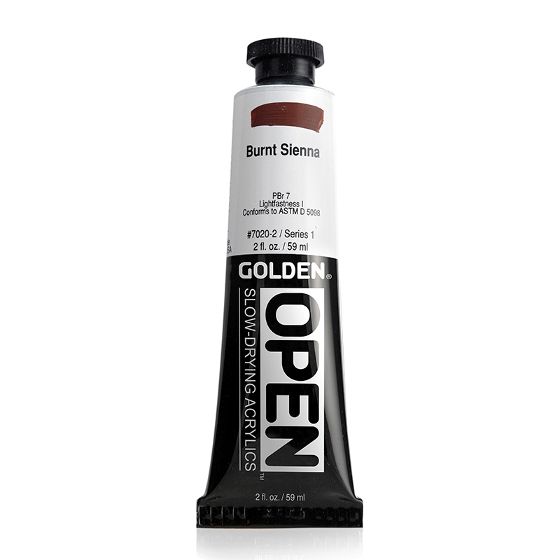 OPEN Slow Drying Acrylics - forblir våt mye lenger enn andre akrylmalinger, og hindrer at det skapes hinne på paletten under lengre arbeidsøkter. Arbeidstiden vil variere etter hvor tykt lag du legger. Tynne lag tørker relativt raskt, og tillater at ytterligere lag påføres eller blandes. Tykkere lag kan bearbeides i flere timer. Strøk på ca. 1,5 mm tykkelse vil tørke ekstremt sakte.