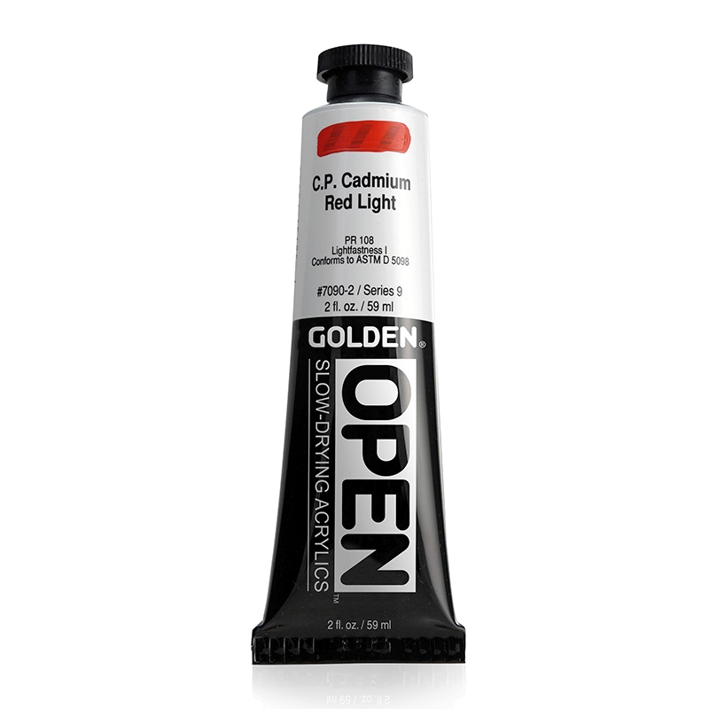 OPEN Slow Drying Acrylics - forblir våt mye lenger enn andre akrylmalinger, og hindrer at det skapes hinne på paletten under lengre arbeidsøkter. Arbeidstiden vil variere etter hvor tykt lag du legger. Tynne lag tørker relativt raskt, og tillater at ytterligere lag påføres eller blandes. Tykkere lag kan bearbeides i flere timer. Strøk på ca. 1,5 mm tykkelse vil tørke ekstremt sakte.