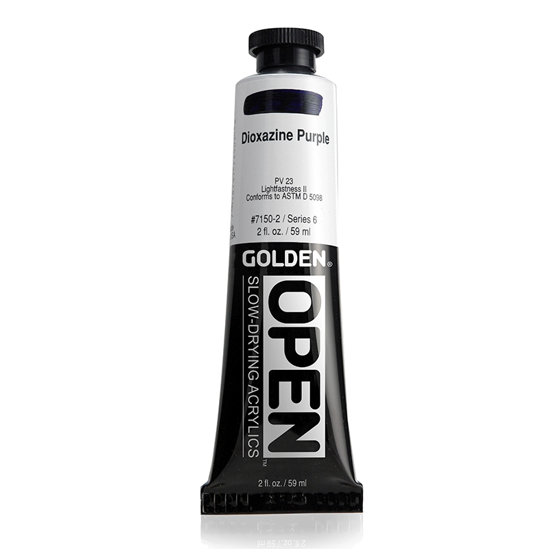 OPEN Slow Drying Acrylics - forblir våt mye lenger enn andre akrylmalinger, og hindrer at det skapes hinne på paletten under lengre arbeidsøkter. Arbeidstiden vil variere etter hvor tykt lag du legger. Tynne lag tørker relativt raskt, og tillater at ytterligere lag påføres eller blandes. Tykkere lag kan bearbeides i flere timer. Strøk på ca. 1,5 mm tykkelse vil tørke ekstremt sakte.