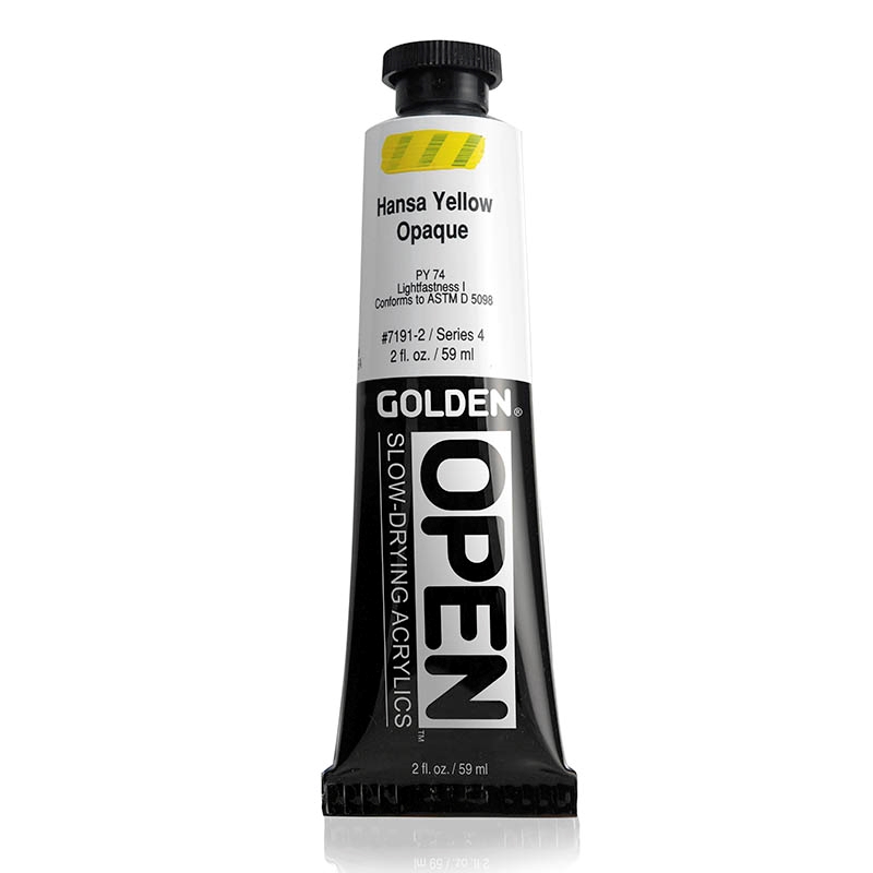 OPEN Slow Drying Acrylics - forblir våt mye lenger enn andre akrylmalinger, og hindrer at det skapes hinne på paletten under lengre arbeidsøkter. Arbeidstiden vil variere etter hvor tykt lag du legger. Tynne lag tørker relativt raskt, og tillater at ytterligere lag påføres eller blandes. Tykkere lag kan bearbeides i flere timer. Strøk på ca. 1,5 mm tykkelse vil tørke ekstremt sakte.