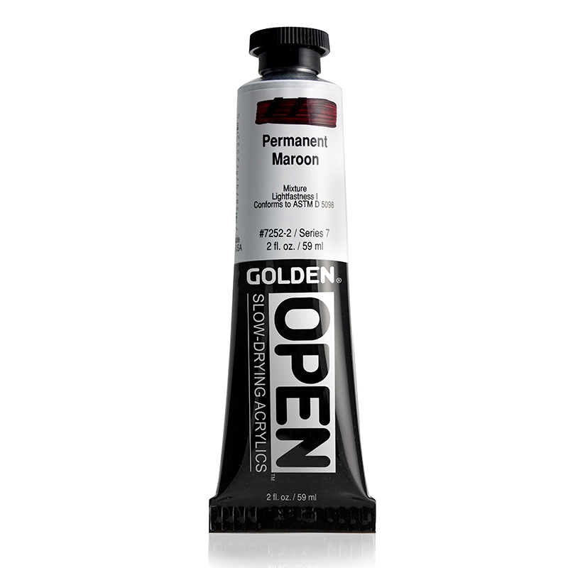 OPEN Slow Drying Acrylics - forblir våt mye lenger enn andre akrylmalinger, og hindrer at det skapes hinne på paletten under lengre arbeidsøkter. Arbeidstiden vil variere etter hvor tykt lag du legger. Tynne lag tørker relativt raskt, og tillater at ytterligere lag påføres eller blandes. Tykkere lag kan bearbeides i flere timer. Strøk på ca. 1,5 mm tykkelse vil tørke ekstremt sakte.