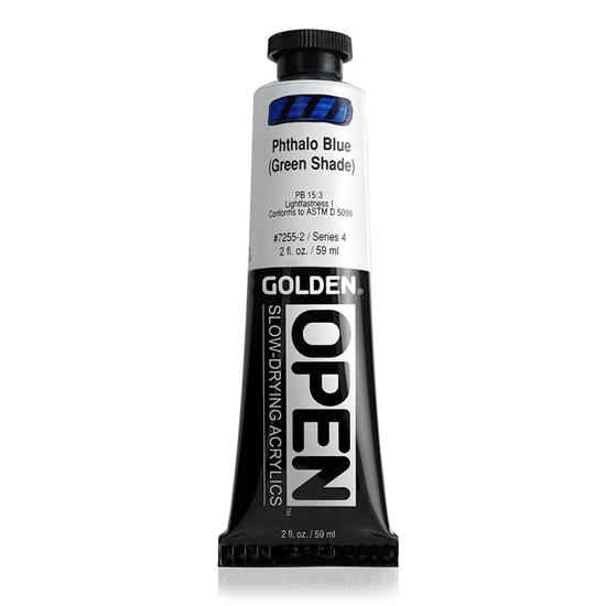 OPEN Slow Drying Acrylics - forblir våt mye lenger enn andre akrylmalinger, og hindrer at det skapes hinne på paletten under lengre arbeidsøkter. Arbeidstiden vil variere etter hvor tykt lag du legger. Tynne lag tørker relativt raskt, og tillater at ytterligere lag påføres eller blandes. Tykkere lag kan bearbeides i flere timer. Strøk på ca. 1,5 mm tykkelse vil tørke ekstremt sakte.