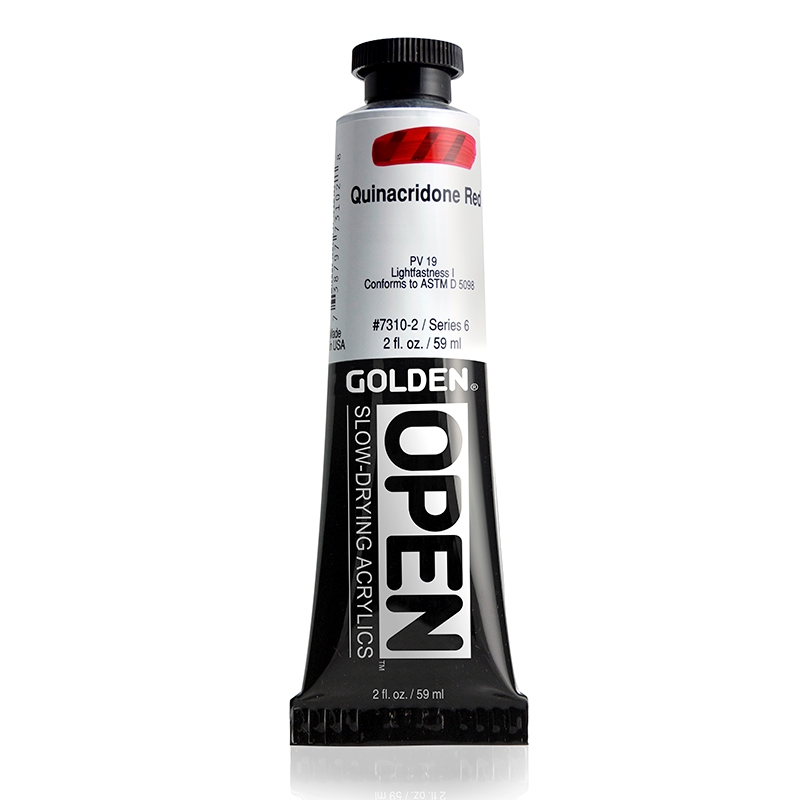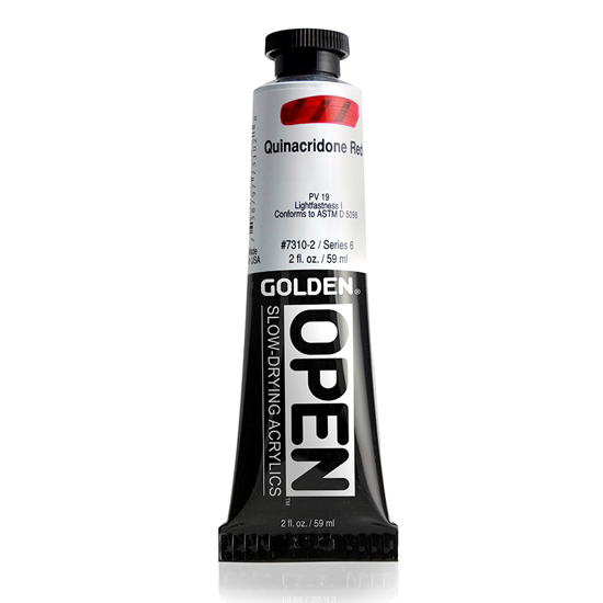 OPEN Slow Drying Acrylics - forblir våt mye lenger enn andre akrylmalinger, og hindrer at det skapes hinne på paletten under lengre arbeidsøkter. Arbeidstiden vil variere etter hvor tykt lag du legger. Tynne lag tørker relativt raskt, og tillater at ytterligere lag påføres eller blandes. Tykkere lag kan bearbeides i flere timer. Strøk på ca. 1,5 mm tykkelse vil tørke ekstremt sakte.