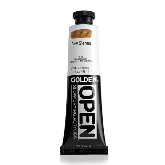 OPEN Slow Drying Acrylics - forblir våt mye lenger enn andre akrylmalinger, og hindrer at det skapes hinne på paletten under lengre arbeidsøkter. Arbeidstiden vil variere etter hvor tykt lag du legger. Tynne lag tørker relativt raskt, og tillater at ytterligere lag påføres eller blandes. Tykkere lag kan bearbeides i flere timer. Strøk på ca. 1,5 mm tykkelse vil tørke ekstremt sakte.