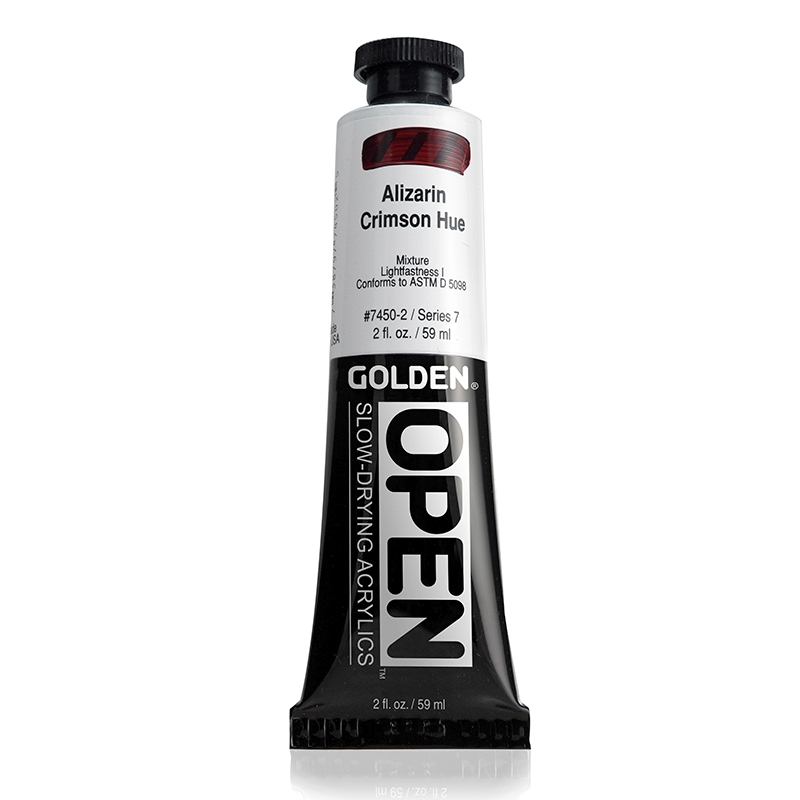 OPEN Slow Drying Acrylics - forblir våt mye lenger enn andre akrylmalinger, og hindrer at det skapes hinne på paletten under lengre arbeidsøkter. Arbeidstiden vil variere etter hvor tykt lag du legger. Tynne lag tørker relativt raskt, og tillater at ytterligere lag påføres eller blandes. Tykkere lag kan bearbeides i flere timer. Strøk på ca. 1,5 mm tykkelse vil tørke ekstremt sakte.