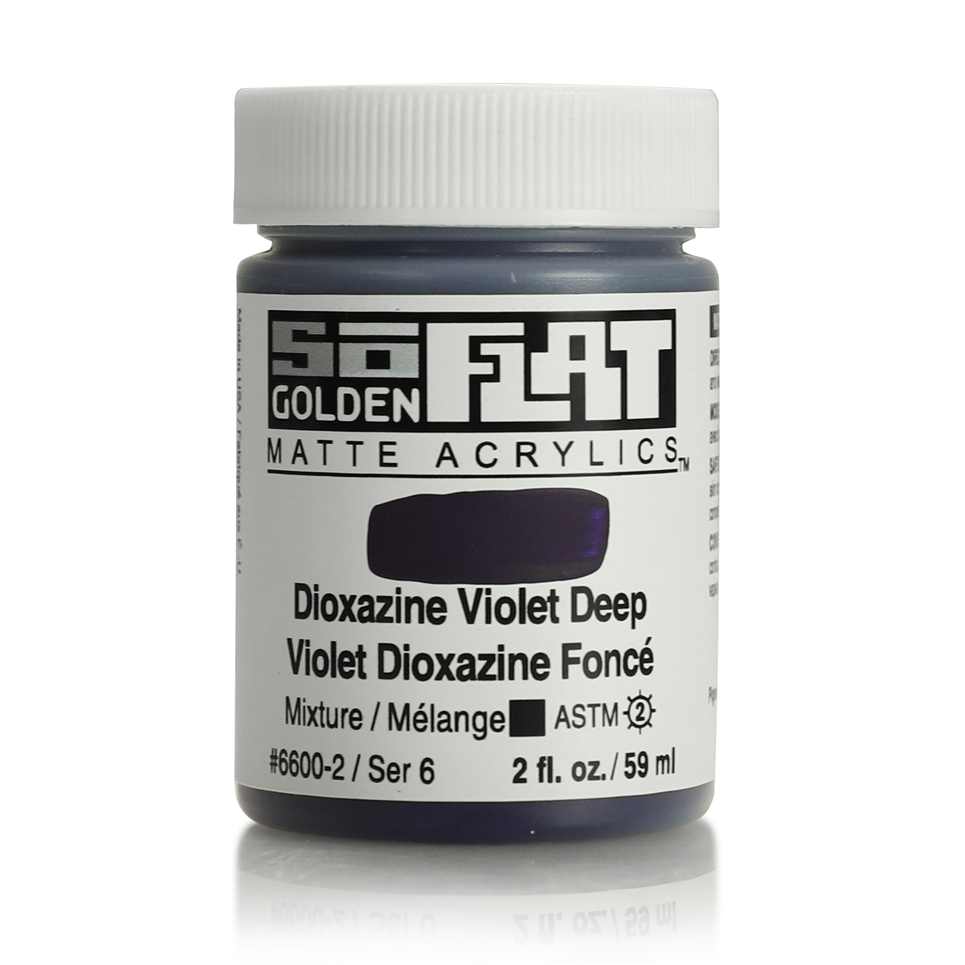 SoFlat Matte Acrylics fra Golden er en opak, matt akrylmaling i kunstnerkvalitet som gir en jevn overflate uten tydelige penselstrøk når den er tørr. Den har en glatt, flytende konsistens og de fleste fargene er helt opake med ett eller to strøk. Fargene er av 100% akryl og er kompatibel med andre farger og medier fra Golden Artist Colors.