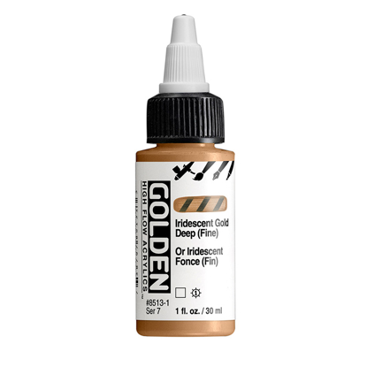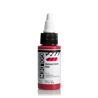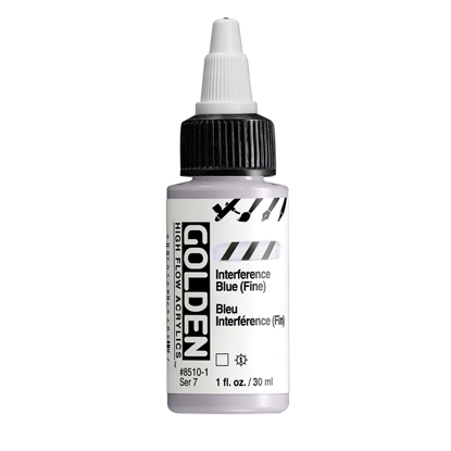 GOLDEN High Flow akrylmaling har høy intensitet, er tyntflytende og består av opake og transparente pigmenter. Fargene er tilnærmet tilsetningsfrie og produsert av 100% akrylpolymer og lysekte pigmenter*. High Flow har like høy kvalitet som alle andre Golden-produkter, og kan blandes med Fluid, Heavy Body, Open, medier, gesso og additiver. *Fluoriserende farger ikke lysekte. High Flow finnes i 49 farger og i størrelsene 30 ml og 118 ml.