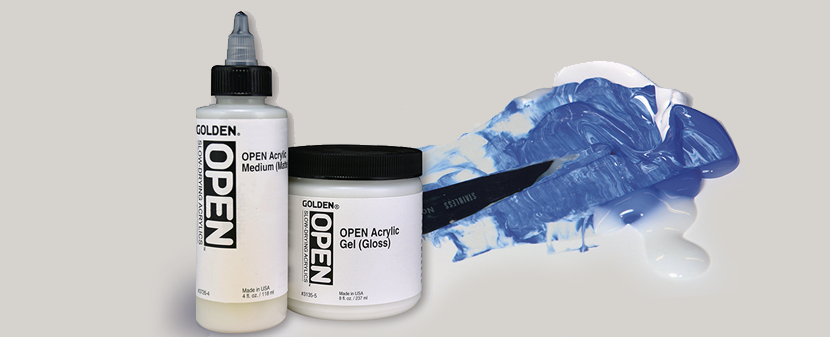 Golden har også egne medier for OPEN akrylmaling, som er konsturert for å ha samme langsomme tørketid som akrylfargene. Som OPEN akrylmaling vil også mediene kunne holde seg våte på paletten i ukevis, så lenge man beskytter mediet.